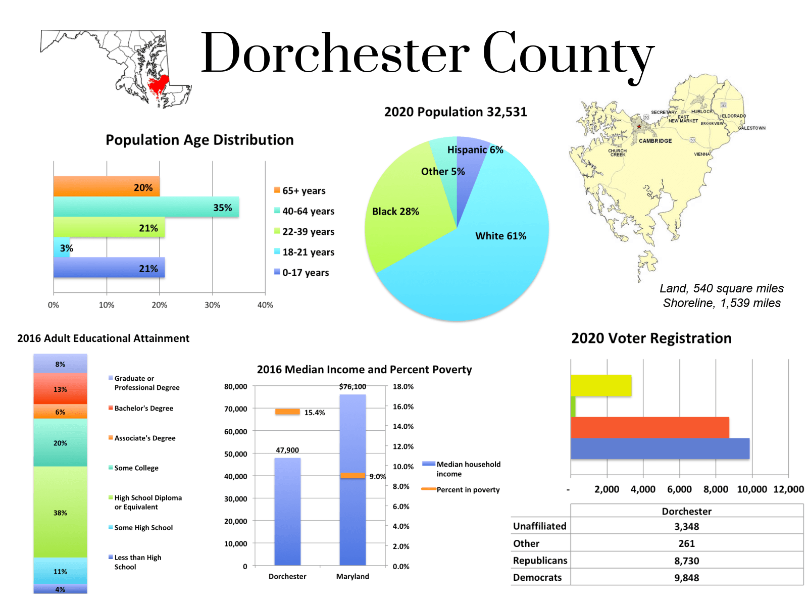 Dorchester County’s median household income is $47,900, compared with $76,100 for the state as a whole.
