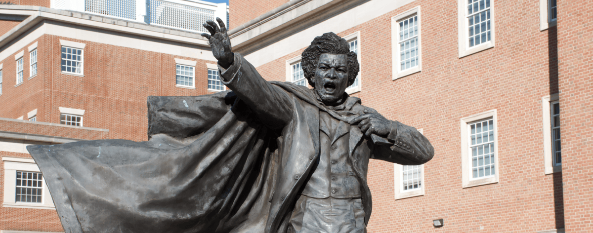 Frederick Douglass statue located on the campus of the University of Maryland College Park.