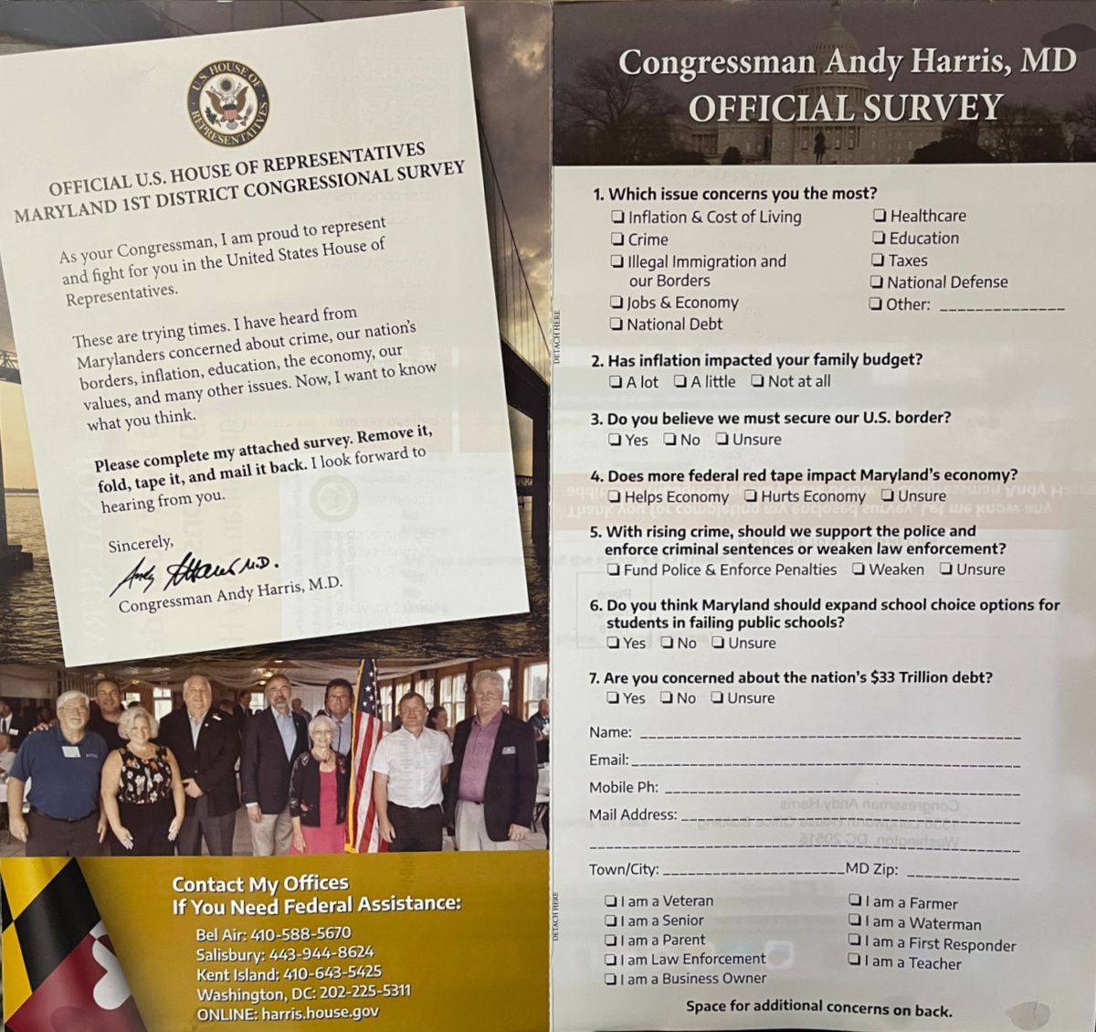 Hi, this is Congressman Andy Harris. As 2023 comes to a close, I wanted to get your input on the issues that matter most to you. Please take a few minutes to fill out the survey here.
