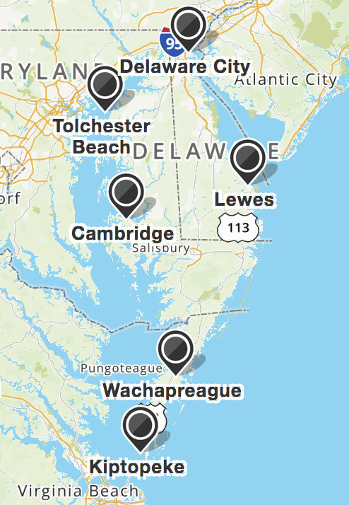 - Reedy Point, Del., where the C&D Canal meets the Delaware Bay, just south of Delaware City;