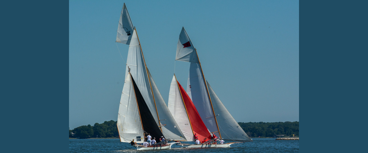 These purpose-built racing boats have long, narrow hulls and low drafts. The stem-to-stern lengths of 35 or so feet are extended by a bowsprit half the hull length. The much higher racing speeds and the scramble from one side of the boat to the other while racing made these vessels impractical for dredging and fishing.