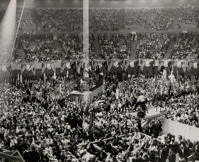 In the middle of our journey through the state delegations, we received word that Kennedy and Johnson were about to have a televised debate before the Texas delegation. Mrs. Roosevelt turned me and said that she very much wanted to watch. “I want to watch privately,” she emphasized. But where? That would not be easy for a woman as universally recognized as Eleanor Roosevelt.