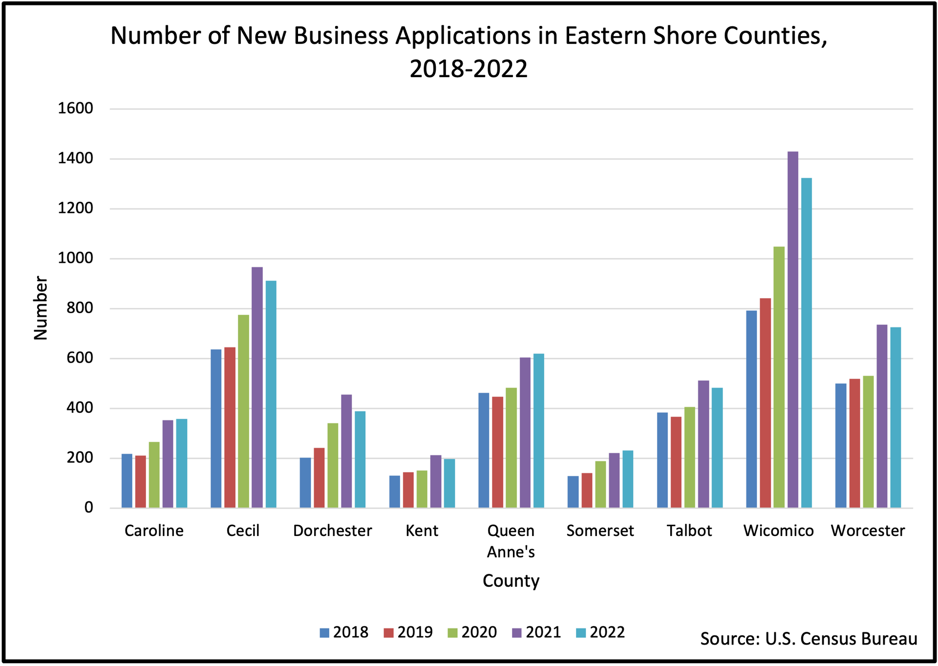 In the past five years, there has mostly been an annual increase in the number of applications in every Eastern Shore county, until 2022. This includes the pandemic years.