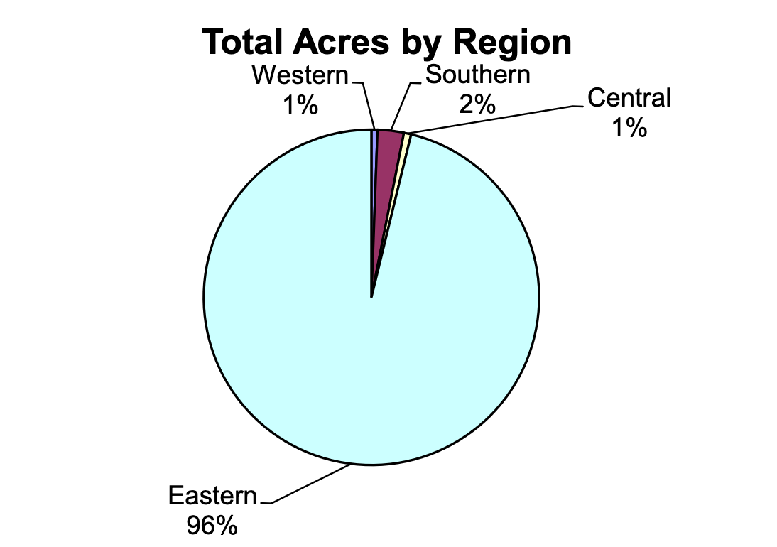 For the fires handled by the Maryland Forest Service in 2021, the Eastern Shore had more wildfires and more acres burned than the four other regions of the state. In 2022, almost half (47%) of the larger wildfires in Maryland were on the Eastern Shore as well as almost all (96%) of the acres burned in those wildfires. in 2015, a peak year state-wide for wildfires, the Eastern Shore had 30% of all fires handled by the Forest Service. However, that 30% was 77% of all acres burned that year in Maryland. The Eastern Shore contains 49% of Maryland’s forested acres and 99% of marshland.