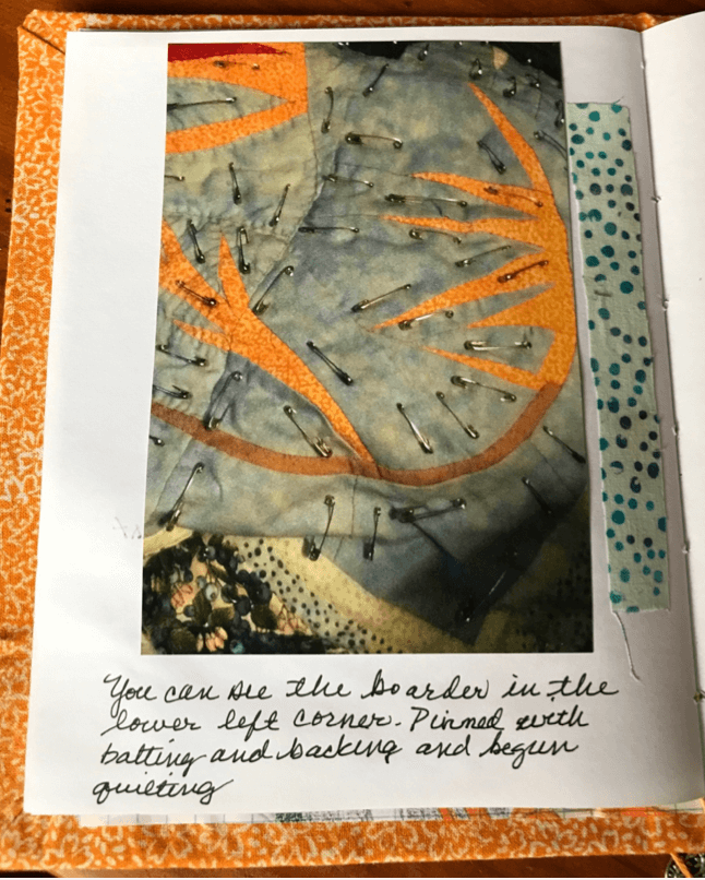 Quilting with safety pins. Photo by the author.