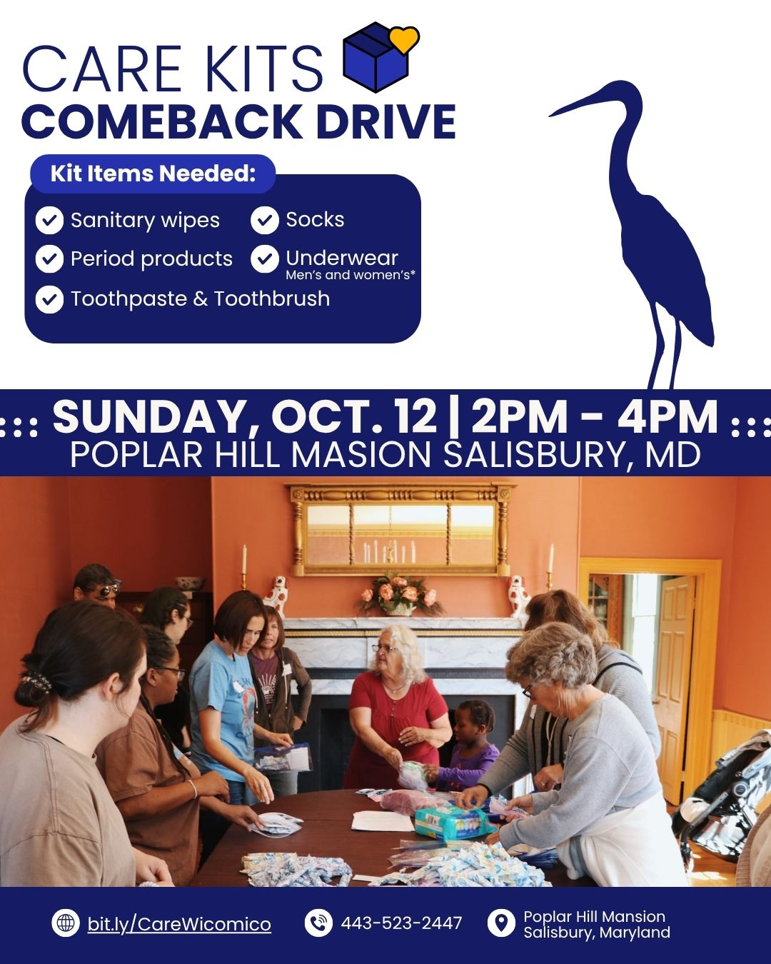 Schablein and Outten have turned the theft into action, launching a new effort called the “Care Kits Comeback Drive.” The event, scheduled for Oct. 12 at 2pm at Poplar Hill Mansion, aims to replace every lost kit, and more.